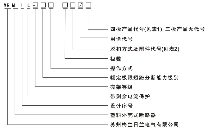 注:1)配電用斷路器無代號,電動機保護用斷路器以2表示。