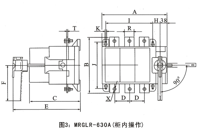 手柄可直接裝在開關(guān)上操作(簡(jiǎn)稱柜內(nèi)操作),也可通過(guò)加長(zhǎng)軸在配電柜門外操作(簡(jiǎn)稱柜外操作)。