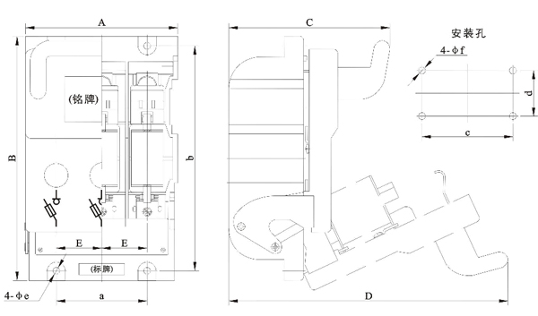 開關(guān)由底座、蓋和滅弧室等部分組成,均由耐弧塑料制成,為全塑型結(jié)構(gòu)。靜觸頭直接裝在底座上,滅弧室拆裝方便,每個滅弧室都有內(nèi)室和外室二部分,采用多片金屬滅弧柵,增強了滅弧能力,提高了觸頭壽命。