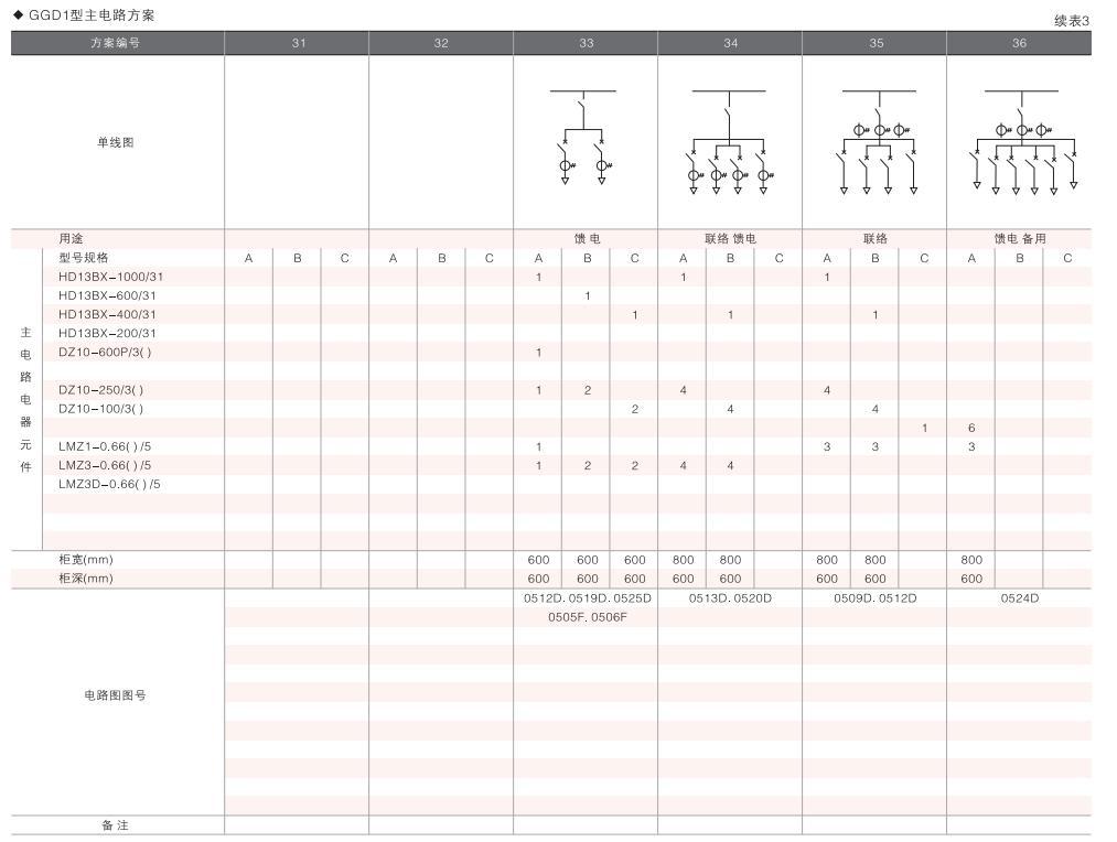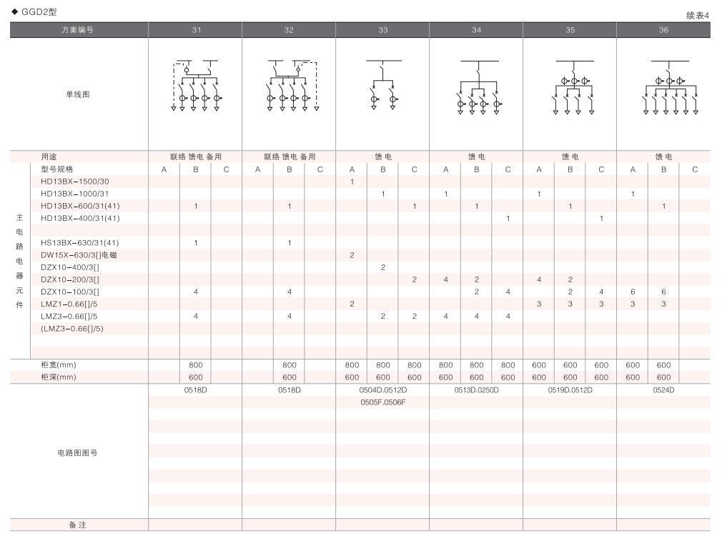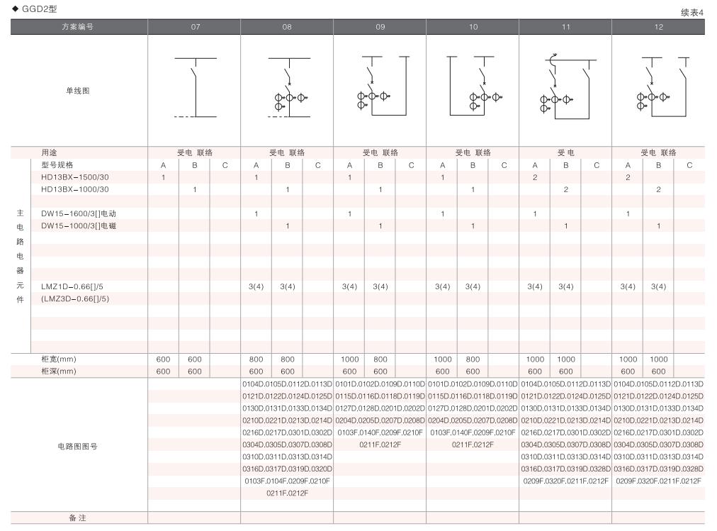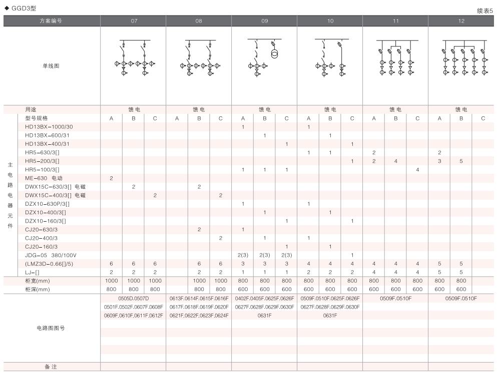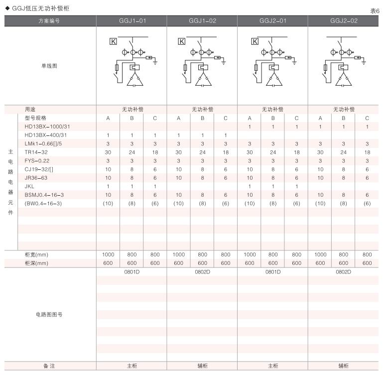 此外,為適應無功補償的需要設計了GGD電容補償柜,其主電路方案4個,共12個規(guī)格。