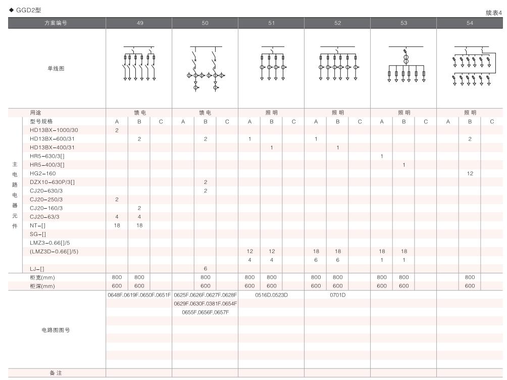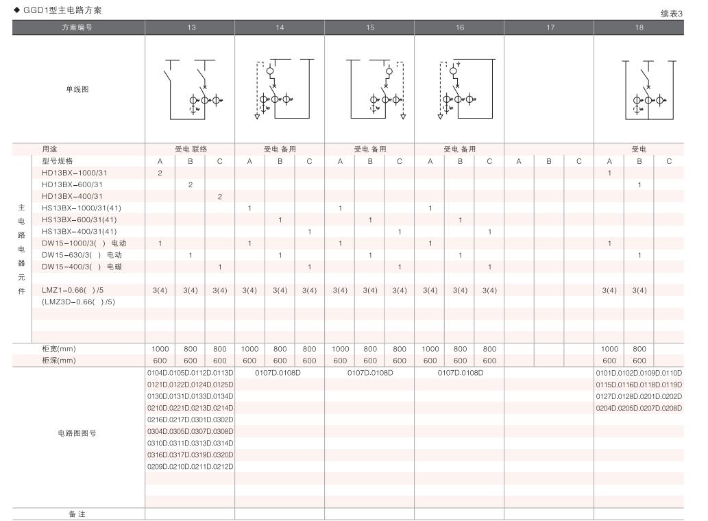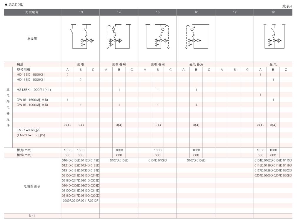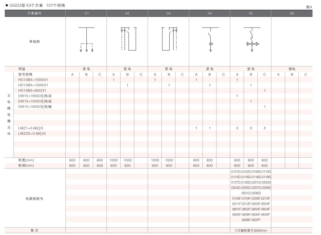 此外,為適應無功補償的需要設計了GGD電容補償柜,其主電路方案4個,共12個規(guī)格。