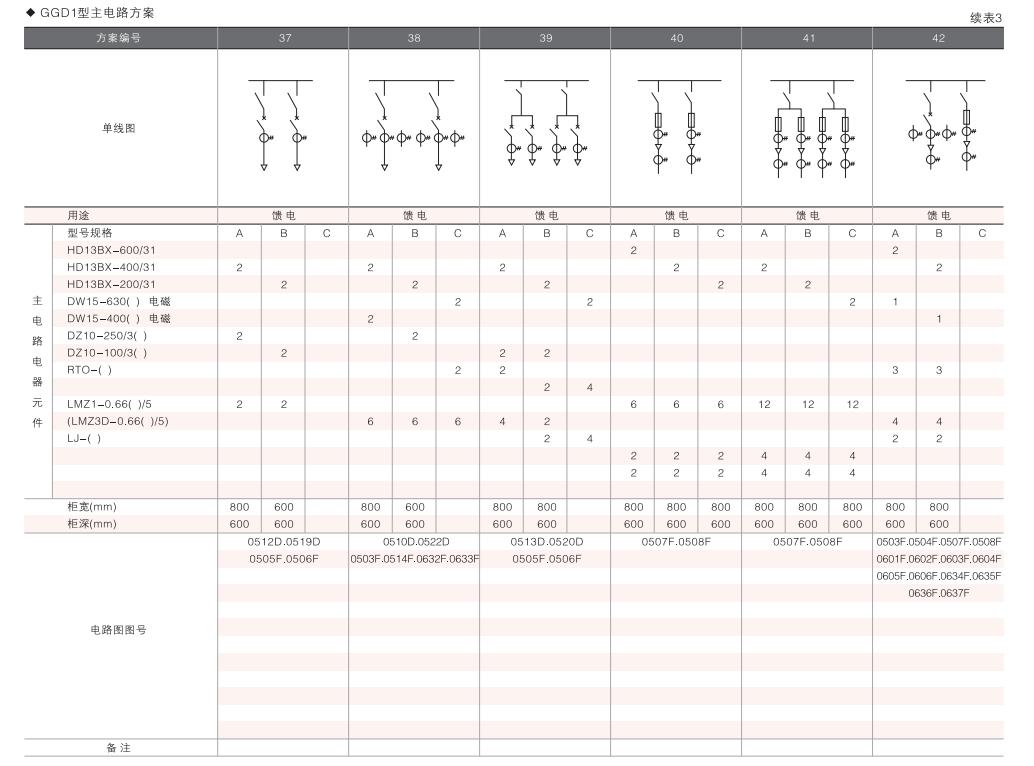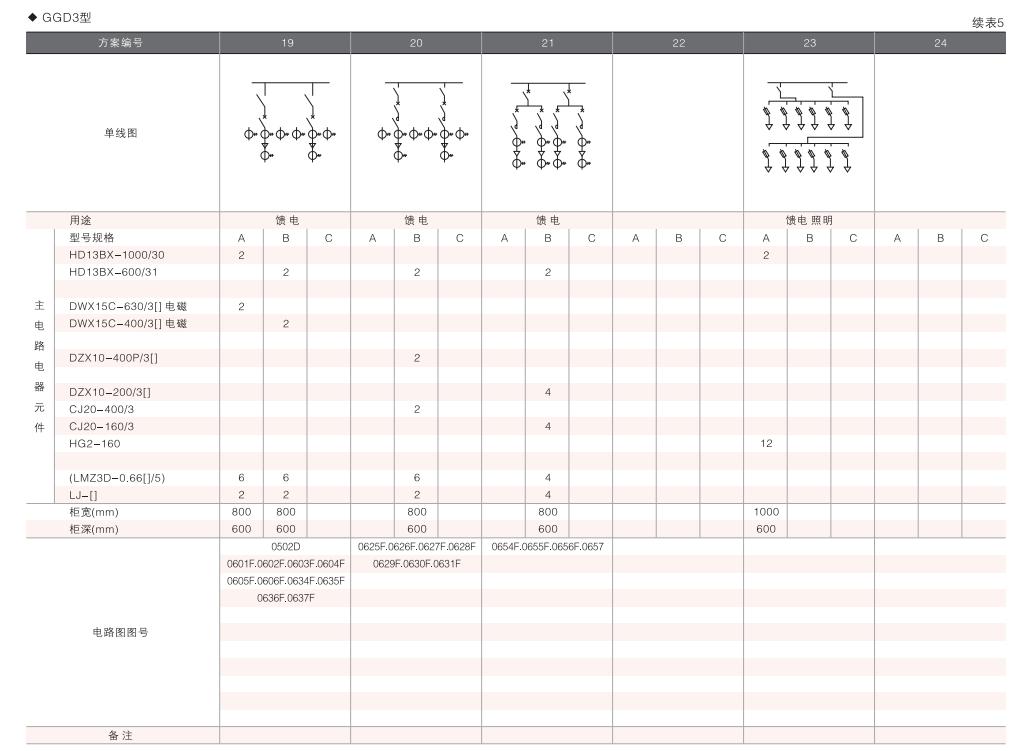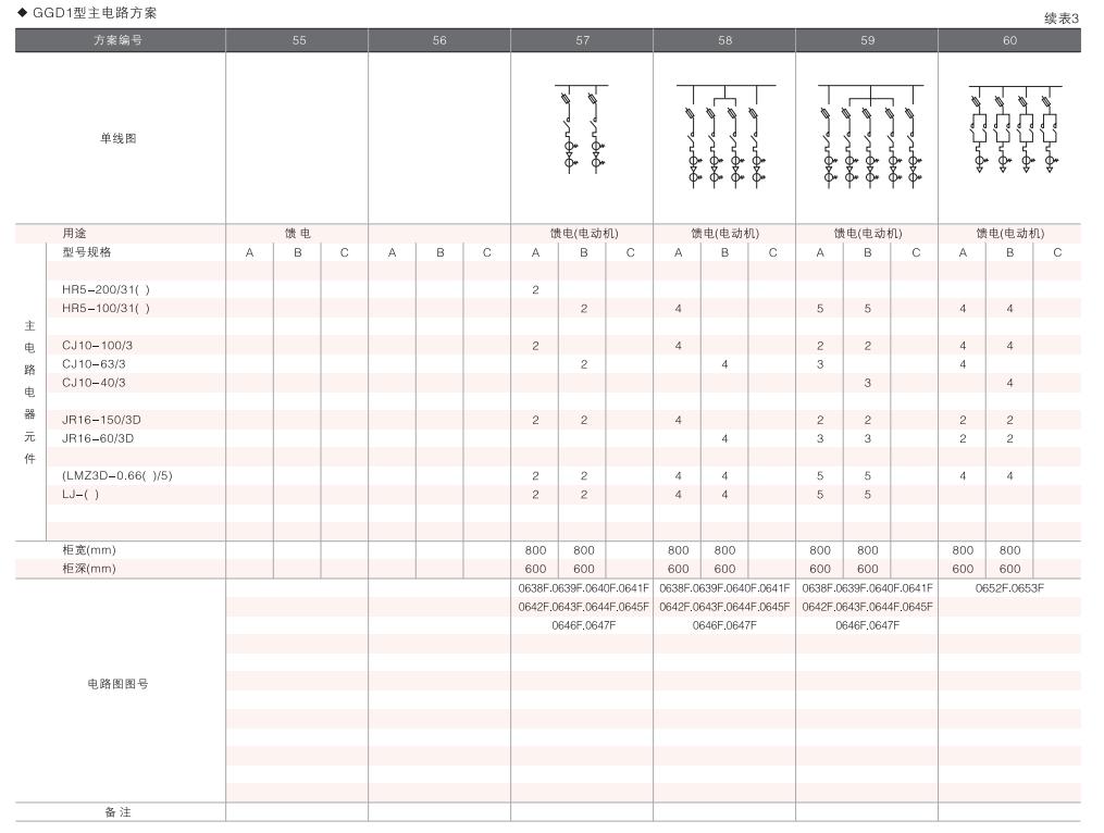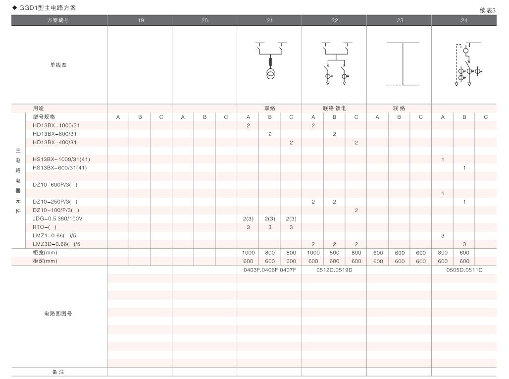 GGD柜的主電路設計7129個方案,共298個規(guī)格《不包括輔助電路的功能變化及控制電壓的變化而派生的方案和規(guī)格)。