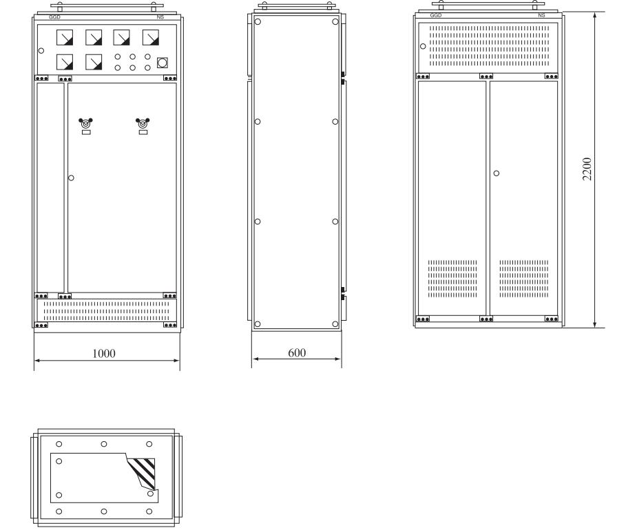 ◆GGD柜設計時充分考慮到柜體運行中的散熱問題。在柜體上下兩端均有不同數量的散熱槽孔,當柜內電器元件發(fā)熱后,熱量上升,通過上端槽孔排出,而冷風不斷地由下端槽孔補充進柜.使密封的柜體自下而上形成一個自然通風道,達到散熱的目的。