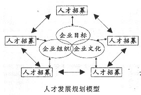 企業(yè)目標、企業(yè)組織、企業(yè)文化是人才發(fā)展規(guī)劃的先決條件,這些內(nèi)容在企業(yè)發(fā)展規(guī)劃中需予以明確和規(guī)定。人才發(fā)展規(guī)劃本身由5個模塊組成,即:人才招募、績效評價、人才激勵、人才發(fā)展、人才退出。這5個模塊構(gòu)成了一個循環(huán),并與企業(yè)目標、企業(yè)組織和企業(yè)文化之間發(fā)生相互作用。該模型的基本原理是Dr.W.Edwards Deming質(zhì)量管理PDCA循環(huán),P (Planning),做事要有計劃;D(Doing),按照計劃實施;C(Checking),檢查執(zhí)行情況;A(ACHEIg),經(jīng)驗反饋與改進。結(jié)合人力資源發(fā)展與管理工作的內(nèi)容,可以建立如圖所示的基本模型。